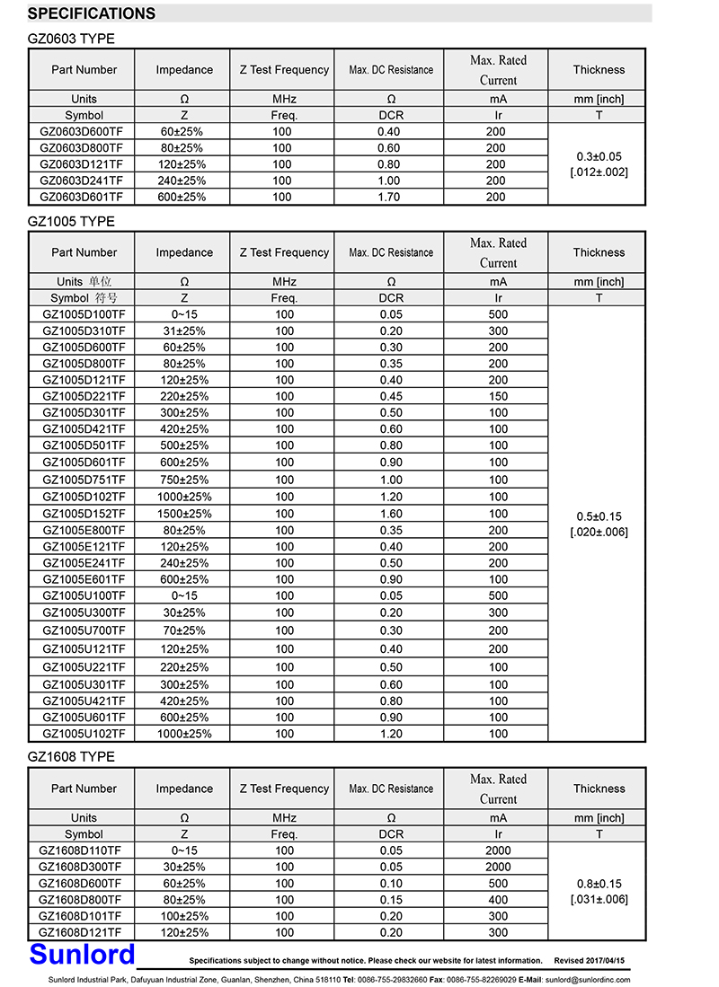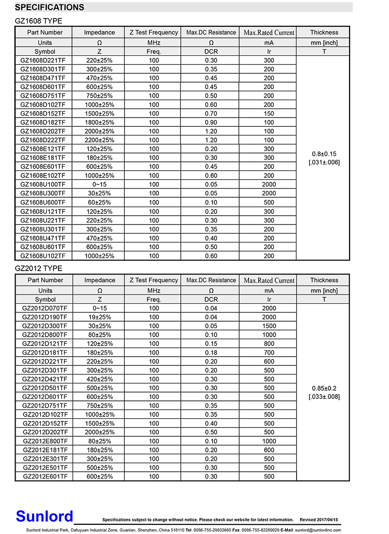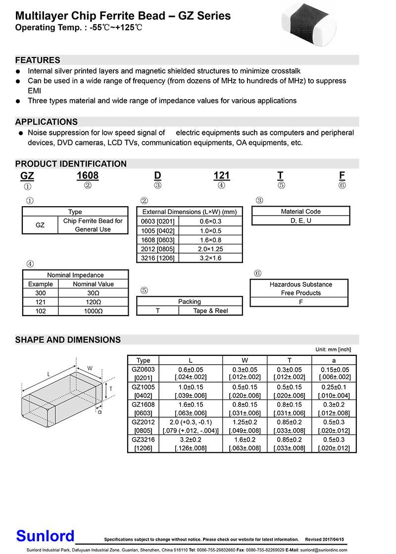 • Sunlord-疊層鐵氧體磁珠